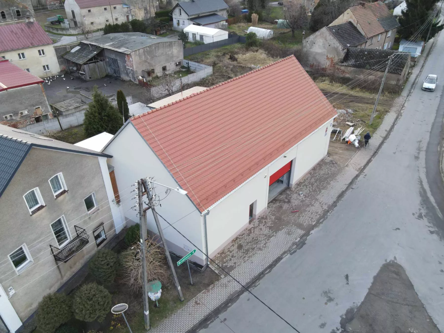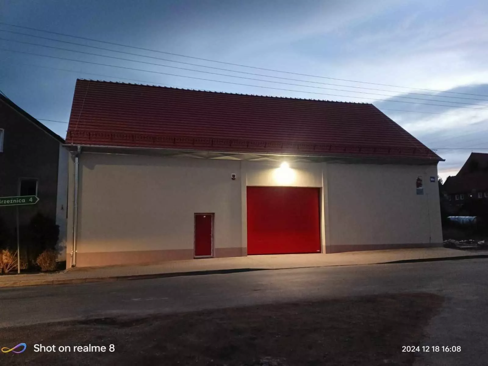 Zamówienie obejmowało również wymianę bramy wjazdowej na bramę przemysłową, segmentową z napędem elektrycznym, wymianę istniejących drzwi wejściowych na drzwi techniczne stalowe jak i wymianę źródeł oświetlenia wewnętrznego na 13 sztuk opraw liniowych led hermetycznych i naświetlacz zewnętrzny hermetyczny.