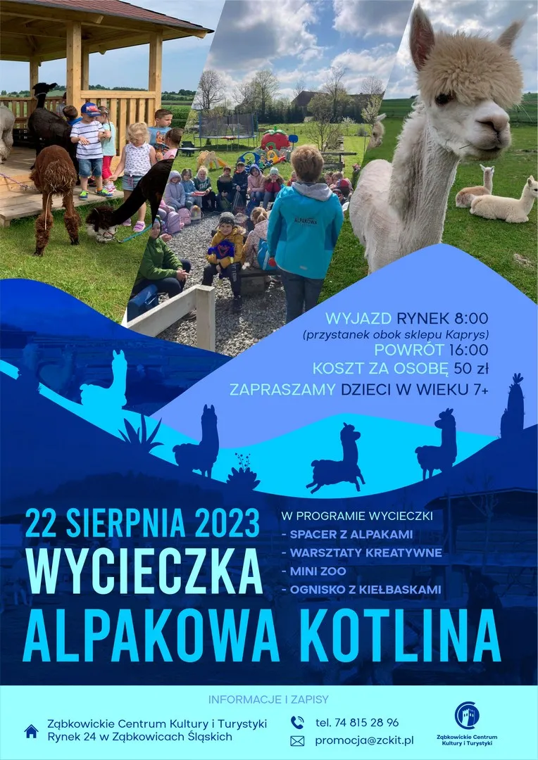 22 sierpnia 2023 r., WYCIECZKA DO ALPAKOWEJ KOTLINY: koszt za osobę 50 zł.