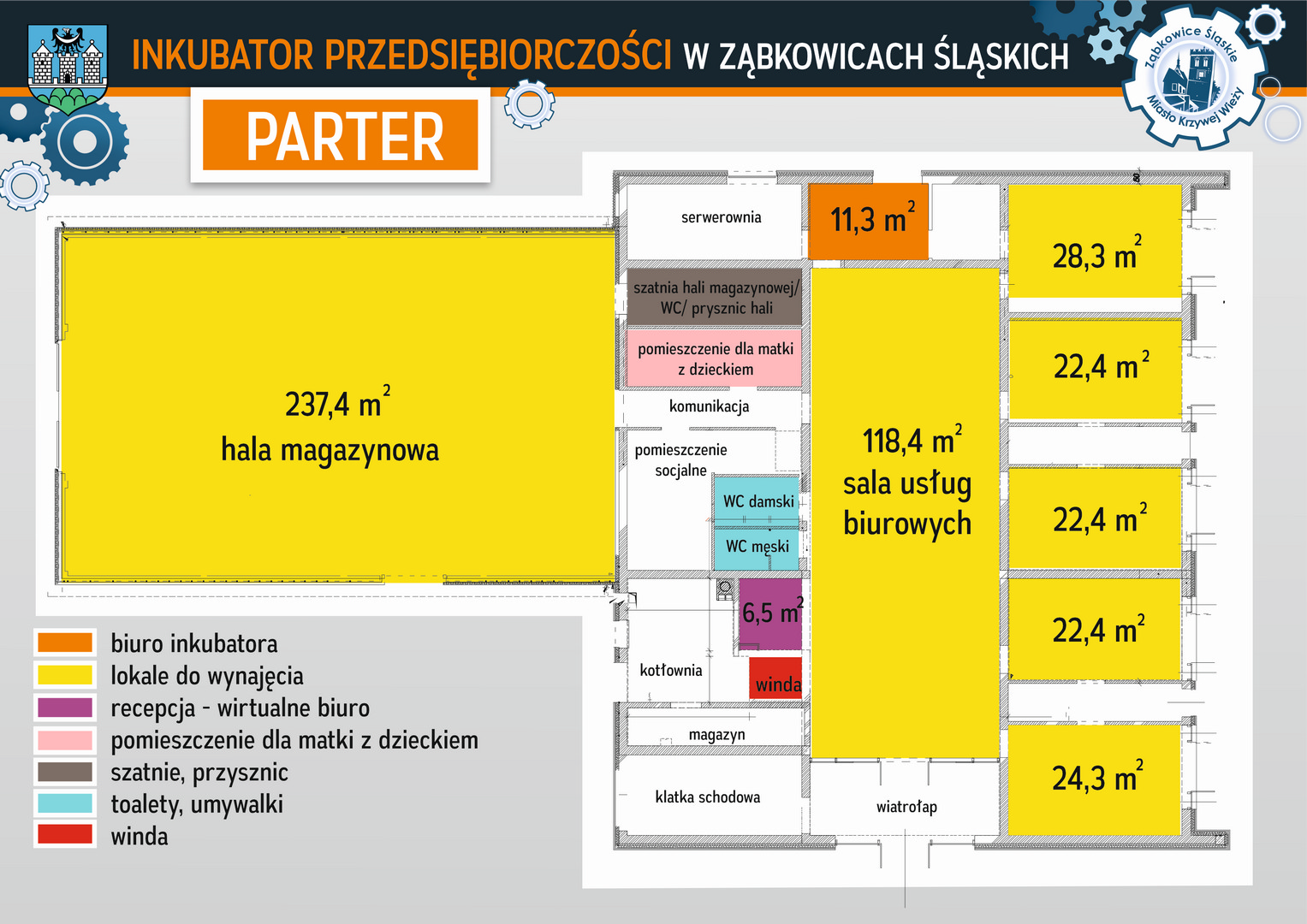Budynek inkubatora wraz z parkingami będzie dostosowany dla osób z niepełnosprawnościami (winda), a jego siedziba będzie się znajdowała przy ulicy Biznesowej w sąsiedztwie Ząbkowickiej Strefy Ekonomicznej przy ulicy Cukrowniczej.
