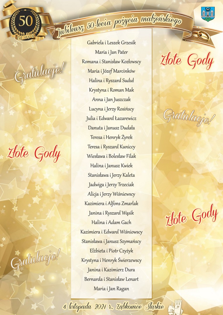 Złote Gody 2021 w Gminie Ząbkowice Śląskie